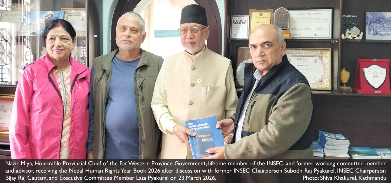 INSEC was founded in 1988 by inexorable HR defender late Prakash Kaphley and prominent HR activist Sushil Pyakurel. Started with the objective of protecting the rights of people engaged in informal sectors, it has significantly contributed in protecting and promoting the fundamental rights of people in virtually all sectors. The efforts made during its early days made effective contributions in institutionalizing the democratic polity in the nation from a rights-based approach, both at the policy and grassroots levels, especially after the restoration of democracy in 1990/91.