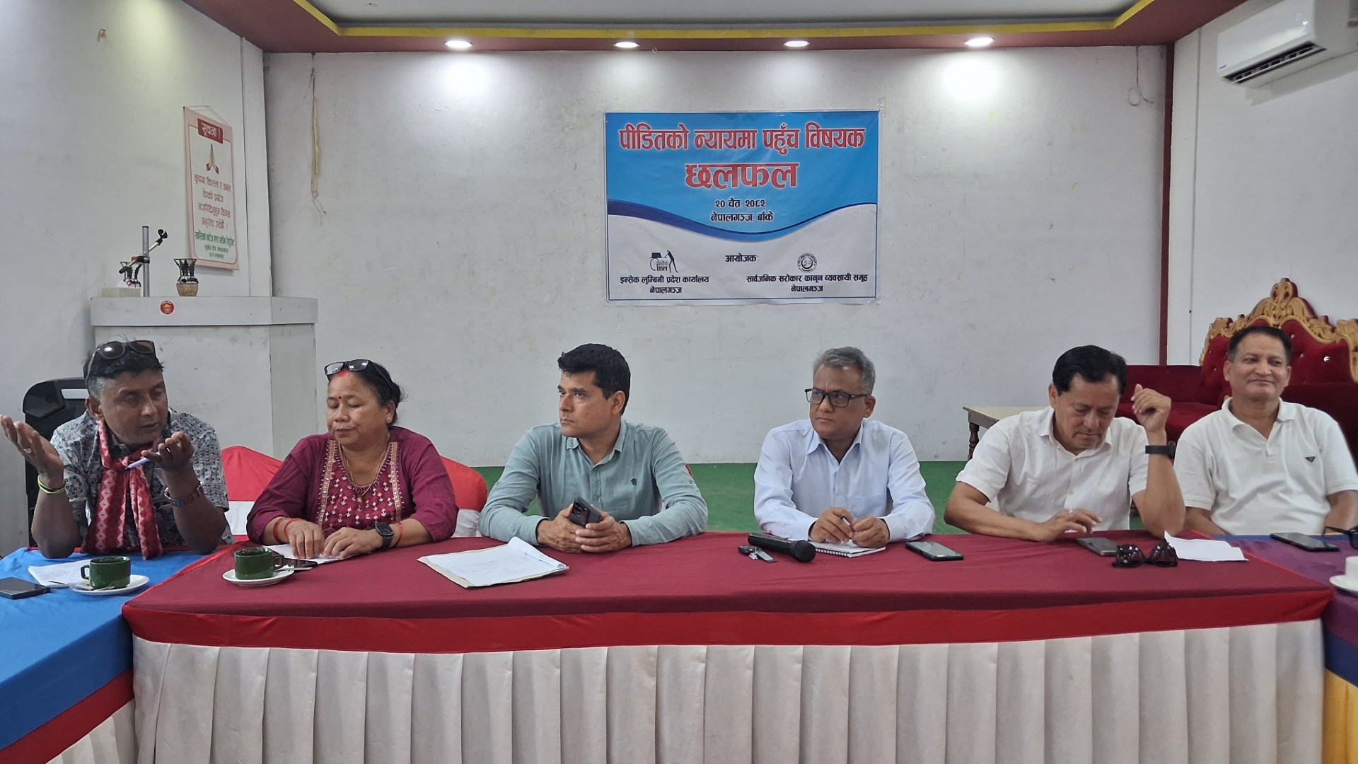 अनौपचारिक क्षेत्र सेवा केन्द्र (इन्सेक) लुम्बिनी प्रदेश कार्यालय र सार्वजनिक सरोकार कानुन व्यवसायी समूहको संयुक्त आयोजनामा सरोकारवालाहरुसँग “पीडितको न्यायमा पहुँच” विषयक छलफल कार्यक्रम ०८२ चैत २० गते नेपालगञ्जमा सम्पन्न भएको छ।