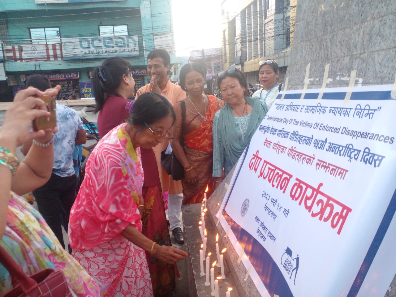 बलपूर्वक वेपत्ता पारिएका नागरिकहरूको १५ औं अन्तराष्ट्रिय दिवसका अवसरमा विराटनगरको महेन्द्र चोकमा ०८२ भदौ १४ गते दीप प्रज्वलन गरिएको छ ।