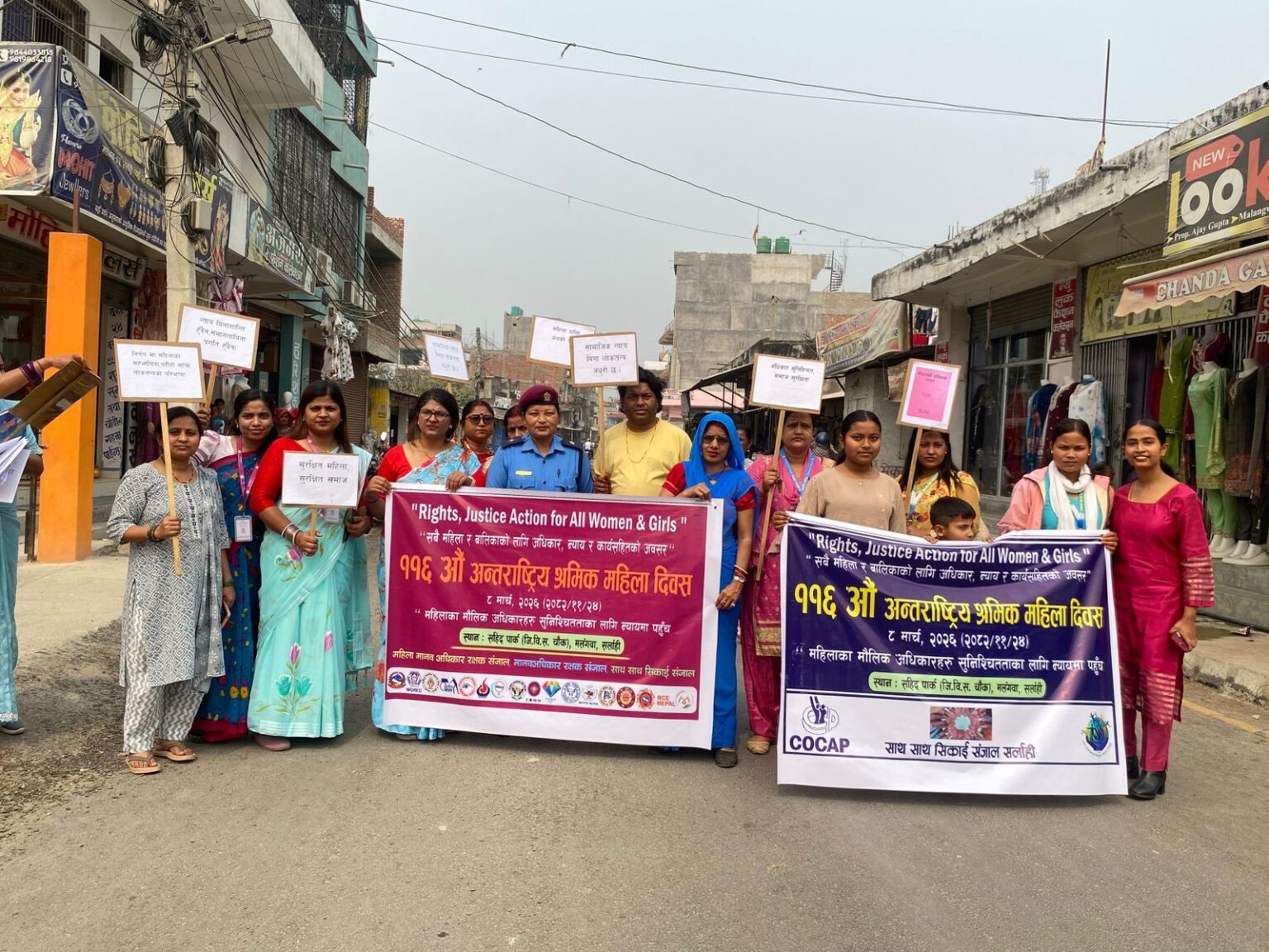 मधेश प्रदेश कार्यालयका अनाुसर “महिलाका मौलिक अधिकारहरु सुश्चितताका लागी न्यायमा पहुँच” भन्ने मूल नाराका साथ महोत्तरीमा पनि ११६ औ अन्तर्राष्ट्रिय महिला श्रमिक दिवसको अवसरमा र्यालीको आयोजना गरी मनाइयो । जिल्ला प्रशासन कार्यालय महोत्तरीको आयोजना तथा जिल्ला प्रहरी कार्यालय महेत्तरी , अनौपचारिक क्षेत्र सेवा केन्द्र (इन्सेक), महिला सचेतना केन्द्र , महिला मानवअधिकार रक्षक संजाल , रतौली युवा क्लव , रोयम नेपाल ,लोक कल्याण परियोजना नेपाल लगायतका संघ संस्थाको  संयुक्त आयोजनामा सदरमुकाम जलेश्वरमा  प्रभात भेरि सम्पन्न गरीएको छ ।