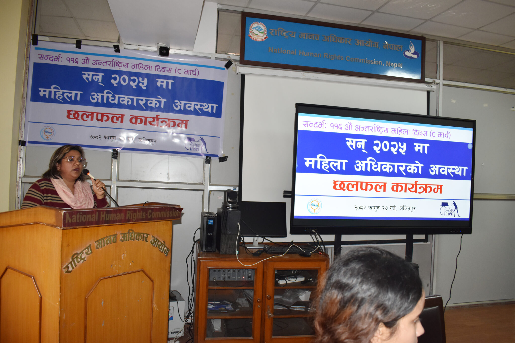 इन्सेकको मानव अधिकार प्रलेख तथा प्रसार विभागकी गरिमा विष्टले सन् २०२५ मा महिला अधिकारको अवस्था विषयमा नेपालको संविधानले महिला अधिकारका सवालमा सुरक्षित मातृत्व, प्रजनन् स्वास्थ्यलगायतका विषयमा प्रस्तुतीकरण गर्दै नेपाल मानव अधिकार वर्ष पुस्तक २०२६ मा उल्लेख भएका तथ्याङ्कका आधारमा महिला हिंसा तथा विभेदका घटनाहरुको आधारमा जानकारी गराउनु भएको थियो ।