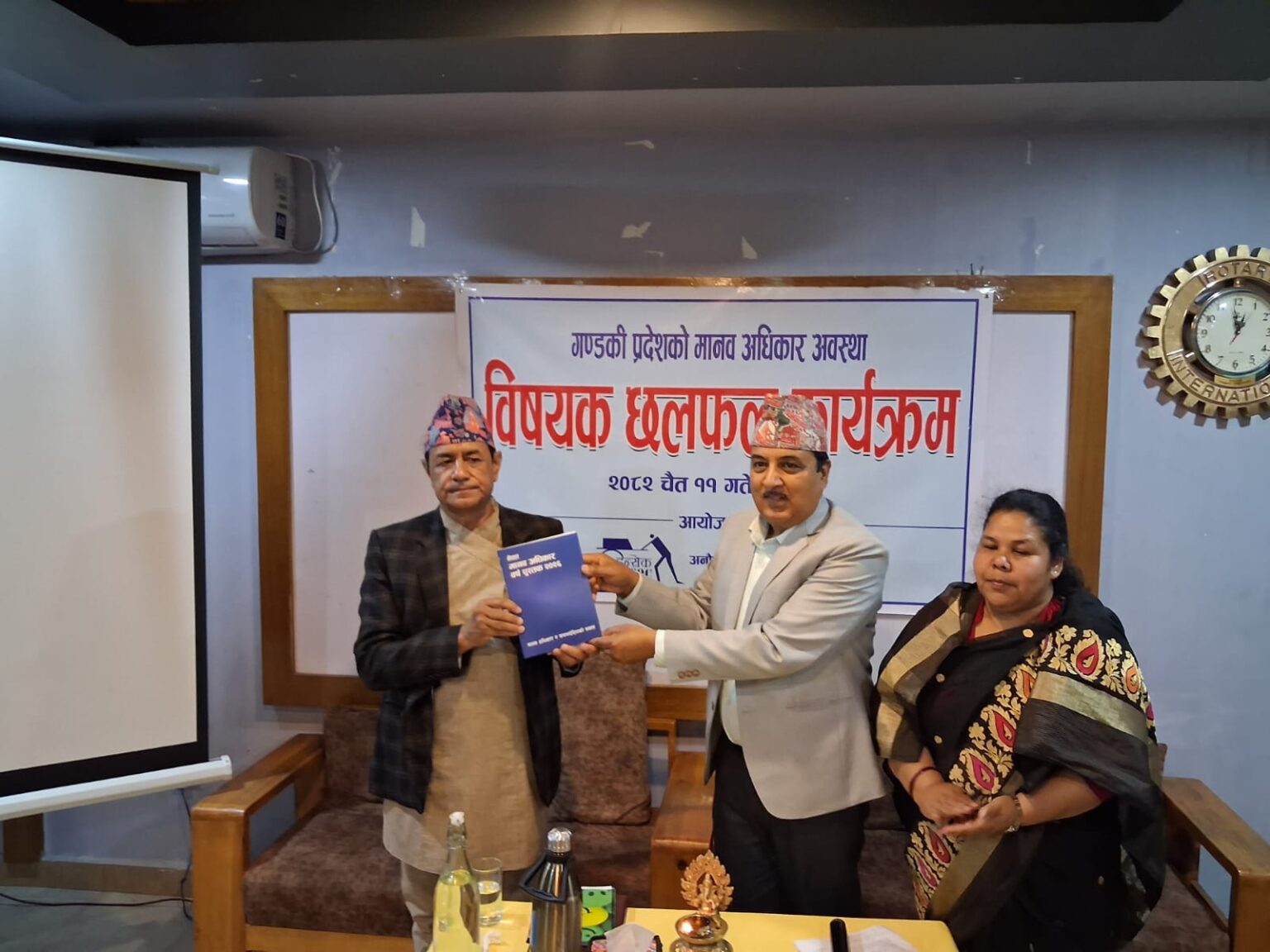 कार्यक्रममा गण्डकी प्रदेशका स्वास्थ्य मन्त्री कृष्ण प्रसाद पाठकलाई इन्सेक गण्डकी प्रदेश संयोजक गणेश भण्डारीले मानव अधिकार वर्ष पुस्तक २०२६ हस्तान्तरण गर्नुभयो । साथै भण्डारीले सन् २०२५ मा गण्डकी प्रदेशमा ७ सय जना मानव अधिकार उल्लङ्घन तथा ज्यादतीबाट पीडित भएको तथ्याङ्क सार्वजनिक गर्नुभयो ।