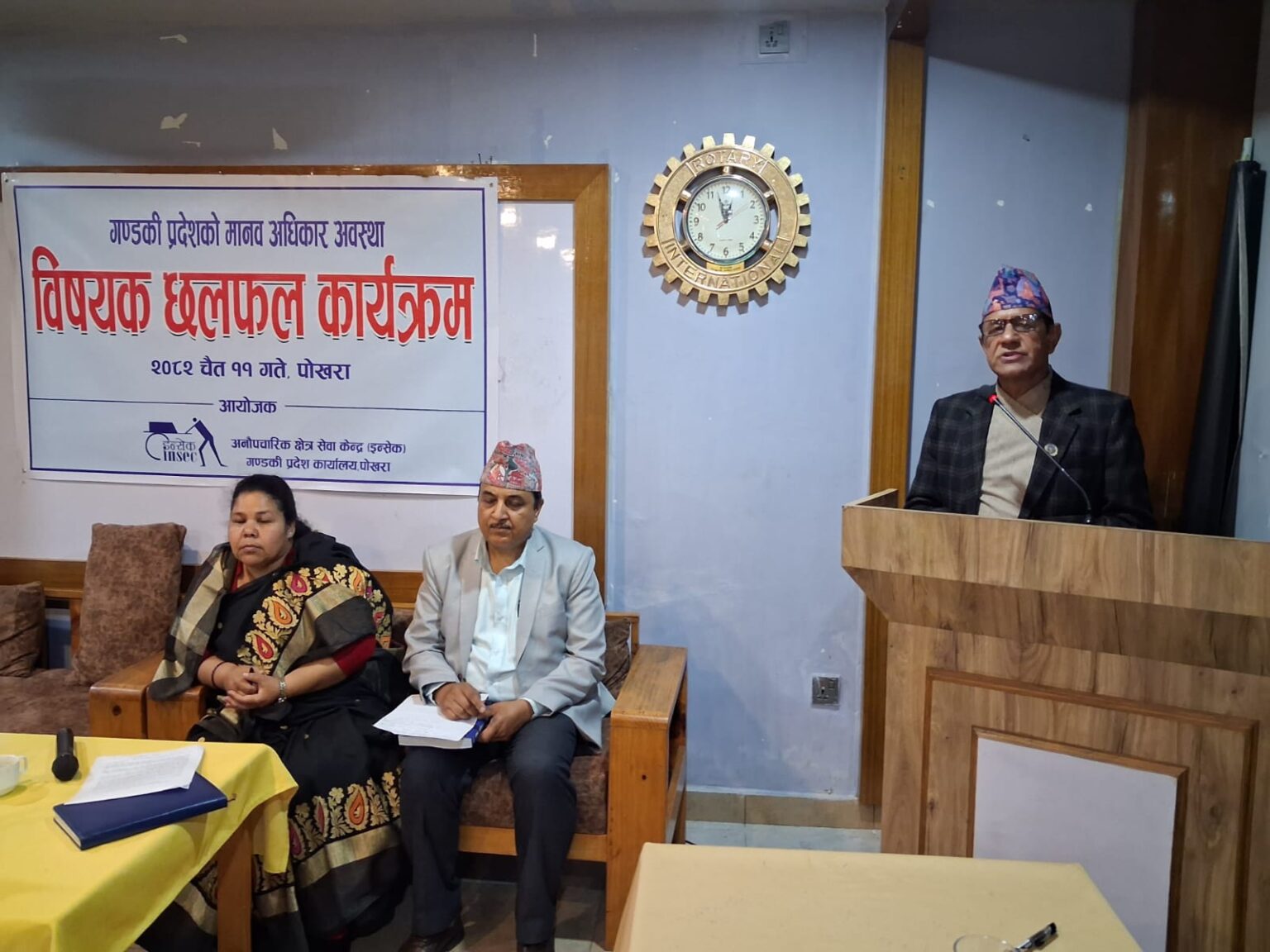 अनौपचारिक क्षेत्र सेवा केन्द्र (इन्सेक) गण्डकी प्रदेशको आयोजनामा ०८२ चैत ११ गते पोखरामा गण्डकी प्रदेशको मानव अधिकार अवस्था विषयक छलफल कार्यक्रम सम्पन्न भएको छ ।