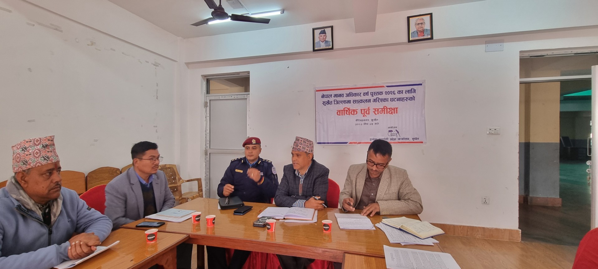 राष्ट्रिय मानव अधिकार आयोग कर्णाली प्रदेश कार्यालयका निमित्त प्रमुख मानबहादुर कार्कीले सुर्खेतमा राज्यपक्षबाट घटनाहरु कम हुनु सकरात्मक रहेको भन्दै सामाजिक सांस्कृतिक तथा आर्थिक अधिकारलाई वर्ष पुस्तकमा प्राथमिकता दिन सुझाव दिनुभयो । राज्यका निकायले अधिकार कार्यान्वयनमा देखिएका कमजोरी सुधार गर्नुपर्ने आवश्यकता रहेको उहाँको भनाई छ ।