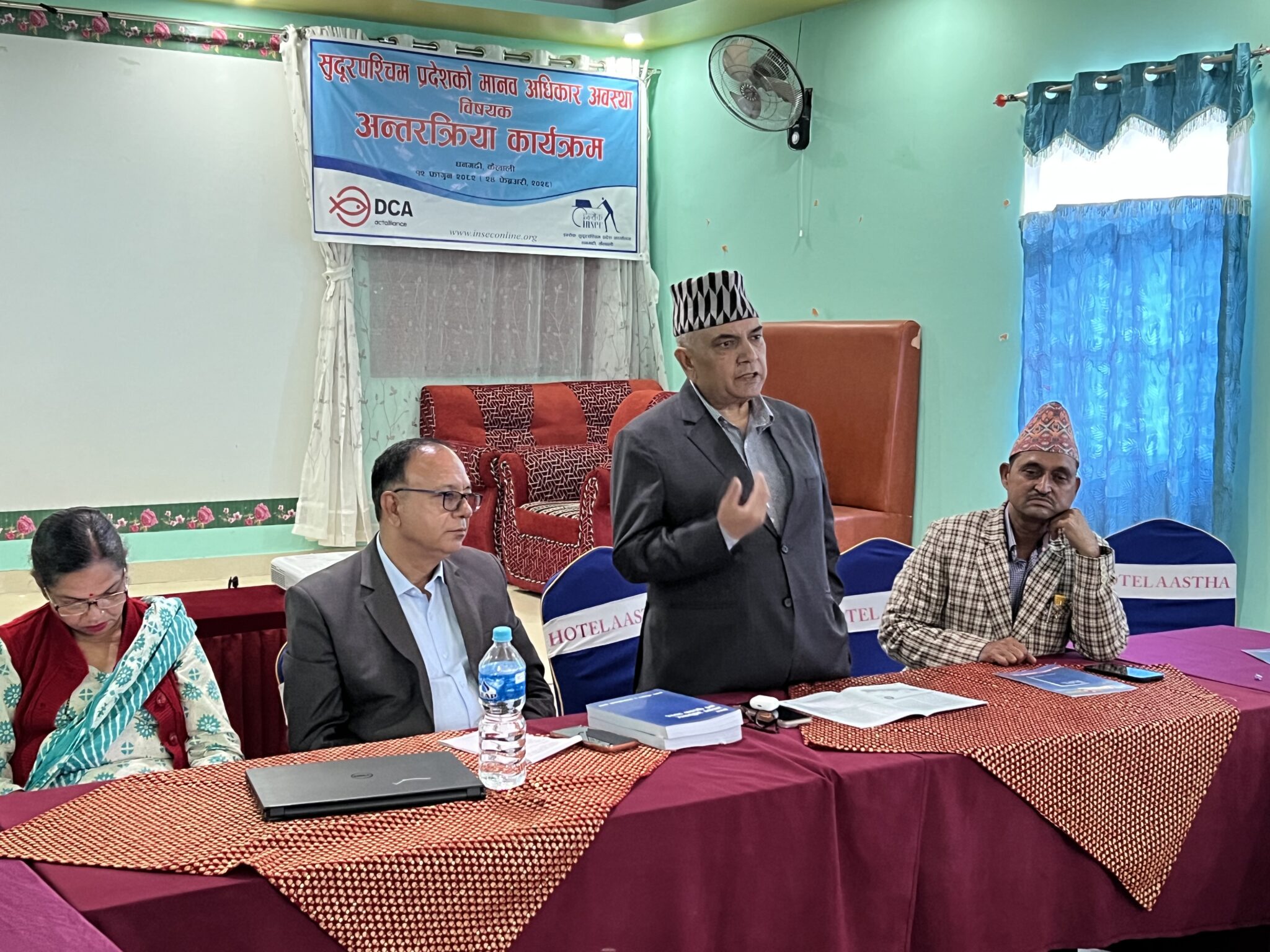 इन्सेक प्रदेश संयोजक खडकराज जोशीले विगतका वर्ष झै यस वर्ष पनि नेपाल मानव अधिकार वर्ष पुस्तक ३४ औँ संस्करण फागुन ७ गते सार्वजनिक भइसकेको जानकारी गराउँदै नेपाल मानव अधिकार वर्ष पुस्तक २०२६ मा सुदूरपश्चिम प्रदेशमा संंकलन गरिएका मानव अधिकार उल्लङ्घन तथा ज्यादतीका घटनाको सार्वजनिक गर्ने उद्देश्यले कार्यक्रमको आयोजना गरिएको बताउनु भयो ।