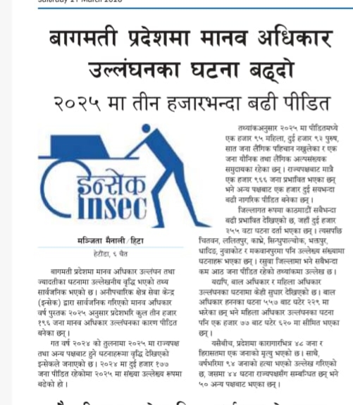 बागमती प्रदेशमा मानव अधिकार उल्लङ्घनका घटना बढ्दो