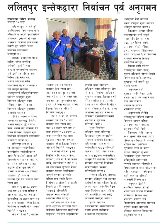 ललितपुर इन्सेकद्वारा निर्वाचन पूर्व अनुगमन
