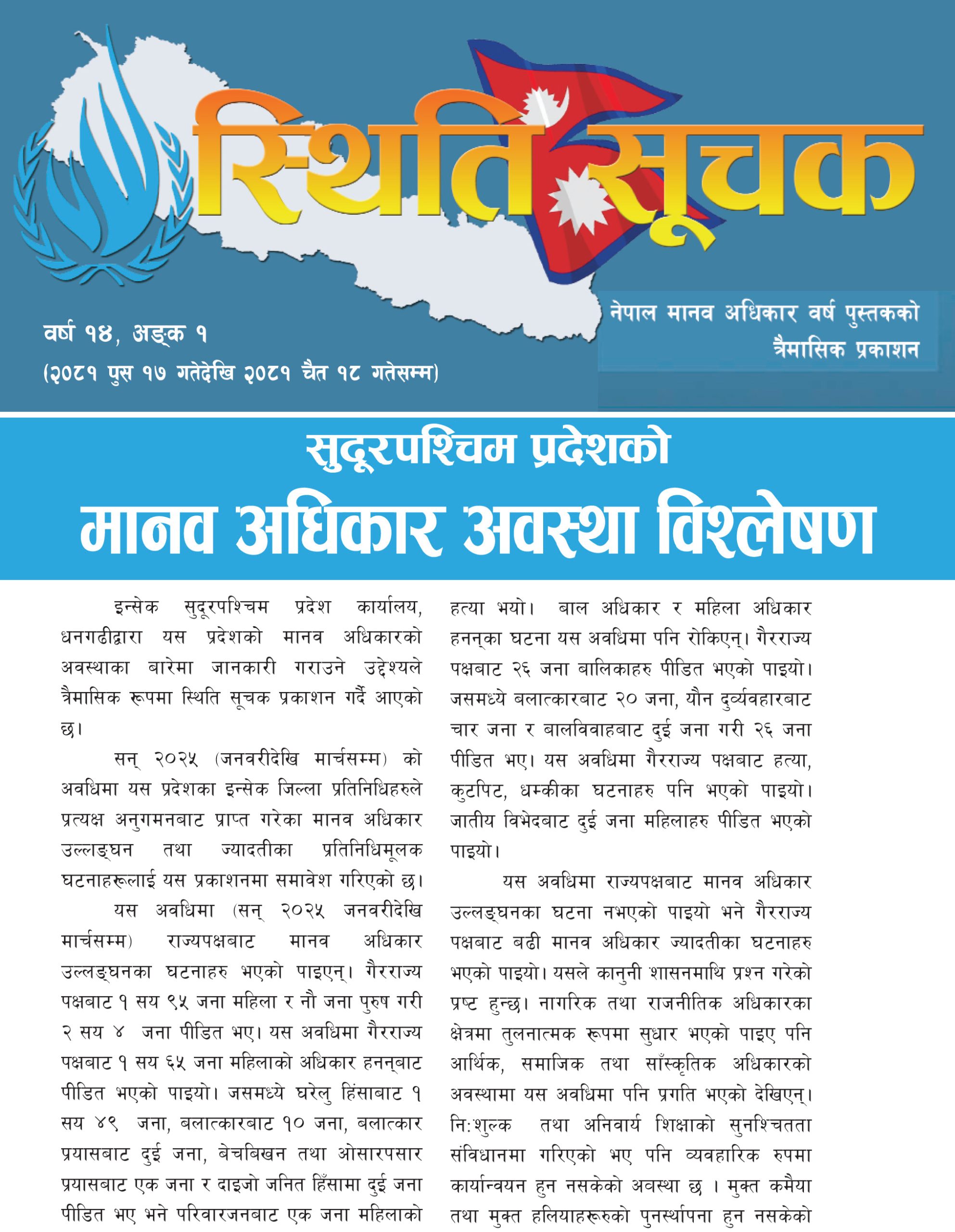 मानव अधिकार स्थिति सूचक सुदूरपश्चिम प्रदेशः २०२५ जनवरी–मार्च